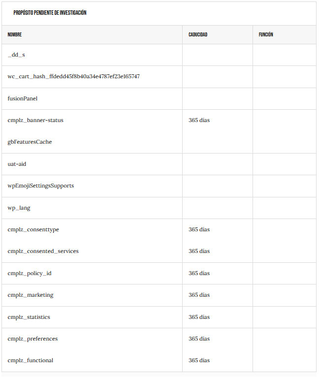 Algunas cookies aseguran que ciertas partes de la web funcionen correctamente y que tus preferencias de usuario sigan recordándose. Al colocar cookies funcionales, te facilitamos la visita a nuestra web. De esta manera, no necesitas introducir repetidamente la misma información cuando visitas nuestra web y, por ejemplo, los artículos permanecen en tu cesta de la compra hasta que hayas pagado. Podemos colocar estas cookies sin tu consentimiento.
